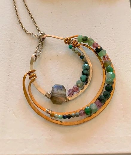 Vanessa Savlen is the artist and designer of Art by any Means. She lovingly handcrafts each piece in her sun-drenched studio in Rockport, MA. Her “muse and passion has always been about combining the amazing natural colors of gemstones and integrating them in the light sculptural movement of fine mixed metals”.