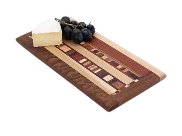 Woods used in cutting boards include hard maple, red oak, white oak, American mahogany, African mahogany, cherry, English walnut, black cherry, white birch, padauk, red birch, Brazilian cherry, Burmese teak, zebrawood, bloodwood, supele, yellowheart, wenge, and purpleheart.